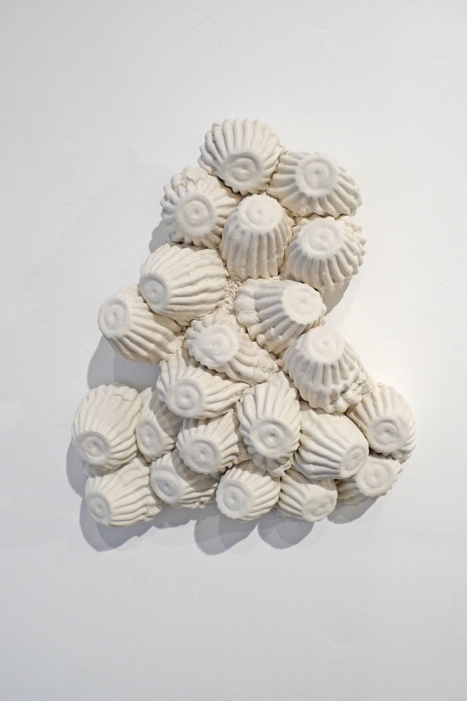 des formes ou s’en affranchissent au gré du travail de l’artiste. La Grande louche en verre, les Moullusques en céramique résultent de la
