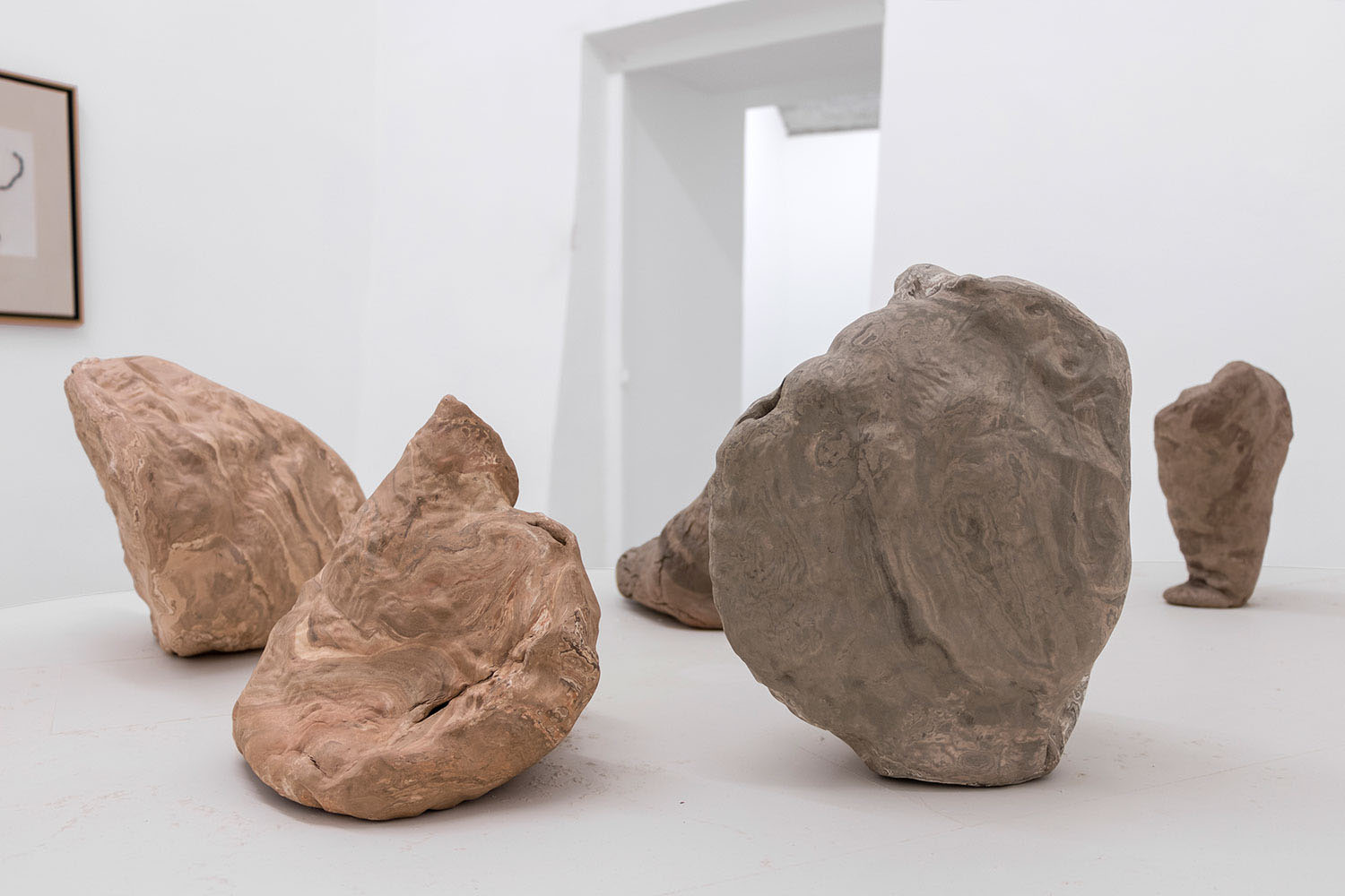 À perte de vue présente les œuvres réalisées par Cécile Beau, Nelly Monnier, Thomas Tronel-Gauthier durant leur résidence de recherche, à l'automne 2020 au Château de l'Arthaudière – site patrimonial dominant la vallée de l'Isère, face au massif majestueux du Vercors. Ce projet est porté par la création à même le paysage. Les œuvres de l'exposition montrent le rapport des artistes à celui-ci, alors même qu'ils sont en train de le définir. (...) Thomas Tronel-Gauthier développe un travail de sculpture à partir d'empreintes de paysages. La technique du moulage lui permet de créer des œuvres de manière presque archéologique, c'est-à-dire de passer de l'étape du prélèvement sur un site (ou objet) spécifique à une version manufacturée qui sera montrée. Giulia Turati - Directrice du centre d'art et co-commissaire de l'exposition (1) Durant son plus jeune âge géologique, la région était en effet une mer. _____________________________________________________________________ Des plus hautes crêtes aux souterrains À perte de vue, le paysage nous entoure et nous sommes immergés. À perte de vue, le paysage est lointain, à l'horizon il promet. À perte de vue, c'est d'abord le paysage comme représentation, le monde qui, parce que figuré, parce que désigné comme tel, devient paysage. Celui-ci concerne avant tout le regard de celui qui l'observe, la position qu'il adopte et le cadrage qu'il lui impose. Mais observer, ce n'est pas pratiquer un espace. On demeure en surface, en surface de ses plateaux, de ses reliefs, de sa végétation, même au fond de ses cavités, on est à sa surface. Car le paysage est vivant, il est relationnel ; un entrelacement d'habitats, d'êtres qui en font l'expérience quotidienne en pratiquant son espace organisé. Visage concret de la géographie, mais aussi des écosystèmes qui le construisent, il n'est pas que nature : « Le paysage, c'est la nature prise dans les filets de l'histoire humaine, dans les chronologies, les échelles, les rythmes, les découpages et les dispersions de l'histoire humaine. »(3) Il faut donc une immersion longue pour réellement en pratiquer son espace, peut-être même faut-il le parcourir, le vivre et en faire son environnement toute une vie durant pour véritablement y prendre part et le comprendre. Toutefois, en adoptant une posture extérieure, en s'affirmant comme observateur au regard vierge, en se pensant en pays étranger, on peut le scruter dans toute sa surface et se laisser surprendre. Lui permettre d'apparaître. Y voir ce que ceux qui le pratiquent ne voient plus. C'est ce regard qui le fait matière. Et pour en faire matière, on peut d'abord le contempler, se laisser porter par toutes ses immensités. On ne domine pas le paysage, on ne peut que s'incliner devant lui. Pourtant, il est possible de s'en approcher, de le toucher d'un peu plus près. C'est ainsi que l'on peut comme Cécile Beau en collecter des morceaux, comme Thomas Tronel-Gauthier en reproduire les textures ou encore, comme Nelly Monnier en extraire l'expérience de ses habitants, de ceux qui le font devenir lieu. Comme un marcheur qui le parcourt, ils se sont arrêtés à des points de vue. Ils ont sélectionné ce qui a capté leur regard, ce qui pourra témoigner de leur passage, malgré tout ils ont tenté d'entrer en dialogue paysagé. Le paysage est dense : composé de tous ces écosystèmes, il s'offre aussi au temps. Les jours s'écoulent certes, les mois, les années se succèdent et s'y empilent. Plusieurs échelles se côtoient ; les durées deviennent éventuellement des périodes. Mais lorsqu'on se trouve à même le paysage tout cela se confond au présent, le défilement des événements ne peut plus être linéaire. Accumulation de mémoires, circularité des saisons, cohabitation des récits, effacement, lenteur, traces ténues et présences. Les temps particuliers du paysage. Une certaine pérennité. « Le paysage participe de l'éternité de la nature, un toujours déjà là, avant l'homme, et sans doute après lui. En un mot, le paysage est une substance. »(4) Ici, le paysage est massif, il est montagne, il est crêtes. Il est vertical en hauteur et en souterrain. Dans son horizontalité, il est plaines et plateaux. Il est à perte de vue. Catherine Barnabé - co-commissaire de l'exposition (3) Jean-Marc Besse, La nécessité du paysage, Marseille, Éditions Parenthèse, 2018, p.15. _____________________________________________________________________ Interview radiophonique réalisée le 11 juin 2021 pour l'émission "A portée de voix" sur Radio Royans : (à partir de 12'30)